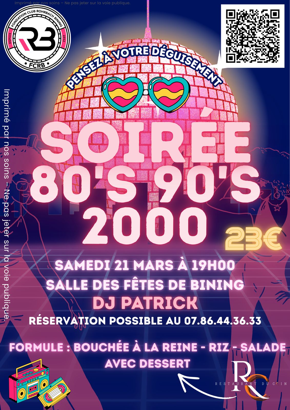 Le FCRB organise le 21 mars à 19h une soirée 80'S 90'S 2000 avec DJ PATRICK.
