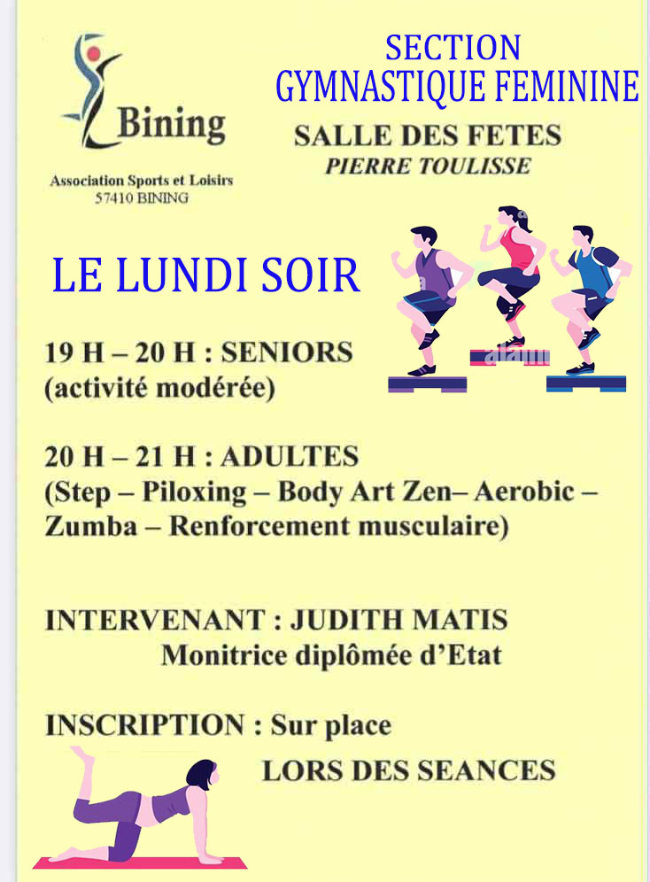 de 20h à 21h: ADULTES (Step - Piloxing - Body Art Zen - Aérobic - Zumba - Renforcement musculaire)